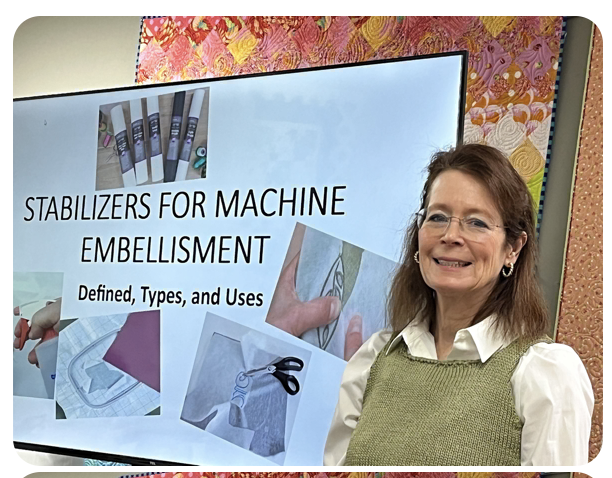 10. February 2025 Greenville Neighborhood Group Meeting LOTS OF COOL SHOW & SHARES Cecilia presented a wonderful program on stabilizers tagPlaceholderTags: Write a comment Comments: 2 #1 Karen Neal (Tuesday, 11 February 2025 07:12) Beautiful items ladies. I’ll get back one day. #2 Doreen McDonald (Monday, 28 April 2025 06:26) Love to see the great projects. Miss you all. Doing well here in Florida. Doreen